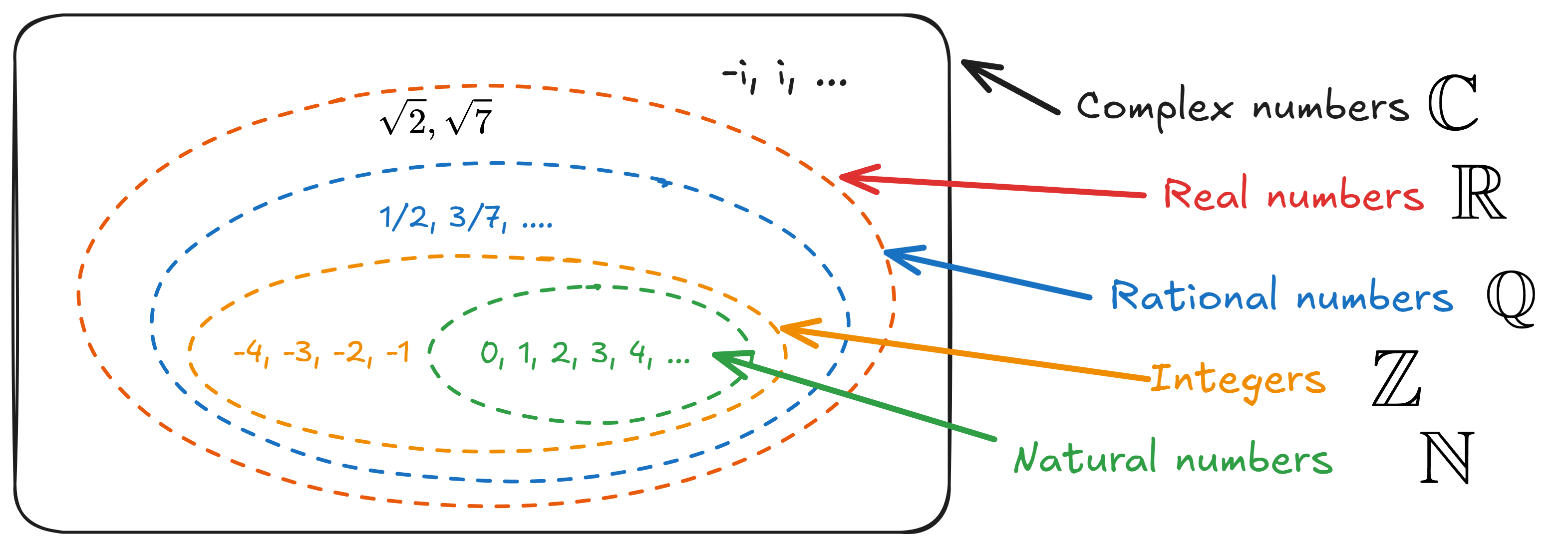 And throughout Unit 1 itself we had slowly introduced more and more common sets that mathematicians use. Here’s a nice table that summarises the ones we have seen so far: